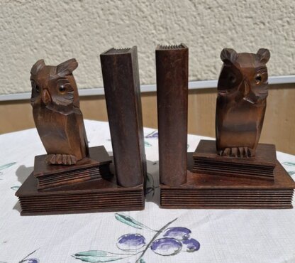39 - Buchstützen mit drehbaren Eulen, Holz